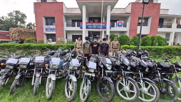 जानकारी के अनुसार पिछले कुछ समय से विशेषकर देहात क्षेत्रों से लगातार दोपहिया वाहन चोरी की शिकायतों पर थाना बहादराबाद, कोतवाली मंगलौर, सिविल लाईन रूडकी सहित उत्तर प्रदेश के थाना नकुड सहित विभिन्न स्थानों पर मुकदमें दर्ज किए गए थे। उन मामलो में संज्ञान लेते हुए एसएसपी प्रमेन्द्र सिंह डोबाल द्वारा विशेष टीम का गठन किया गया। गठित पुलिस टीम ने संबंधित घटनास्थलों के आसपास से डिजिटल साक्ष्य एकत्रित करा तो सामने आया कि उन सभी घटनाओं के पीछे एक ही गिरोह का हाथ है। जिनकी शिनाख्त करते हुए पुलिस ने बीते रोज चौकिंग के दौरान बाइक सवार तीन लोगों को रोका गया। जिनके पास से चुरायी गयी वहीं बाइक बरामद हुई जिसका मुकदमा थाना बहाराबाद में दर्ज था। थाने लाकर की गयी पूछताछ में उन्होने अपना नाम मोहित पुत्र नरेश निवासी ग्राम मौहम्मदपुर बुर्जुग कोतवाली लक्सर, आस मौहम्मद उर्फ आशू पुत्र रियासत निवासी ग्राम नेहन्तपुर लक्सर व दीपक पुत्र मोतीराम निवासी ग्राम मौहम्मपुर बुर्जुग लक्सर बताया। बताया कि हम तीनों व एक अन्य हमारा साथी भीड भाड वाले स्थानों को अपना निशाना बनाते हुए लण्ढौरा व शिकारपुर मंगलौर से 3 मोटरसाइकिल, रविदास घाट सिविल लाईन रूडकी से 3 मोटरसाइकिल, पीठ बाजार बहादराबाद से 1 मोटरसाइकिल, थाना नकुड सहारनपुर व हरियाणा व दिल्ली राज्यो से अन्य मोटरसाइकिल चोरी की है। टीम ने पकड़े गए आरोपितों की निशांदेही पर मुलदासपुर स्थित खण्डर से चोरी की कुल 19 मोटर साइकिल बरामद की है। पकड़ा गया मोहित ट्रैक्टर चलाता है, आस मौहम्मद पेशे से हेयर ड्रेसर है जबकी दीपक पाईप लाइन खोदने का काम करता है।