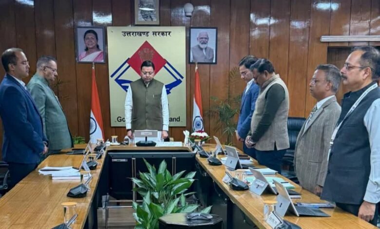 देहरादून। मुख्यमंत्री पुष्कर सिंह धामी की अध्यक्षता में बुधवार को सचिवालय में कैबिनेट बैठक हुई। बैठक में कैबिनेट मंत्री गणेश जोशी, सौरभ बहुगुणा समेत तमाम मंत्री मौजूद रहे। सतपाल महाराज और धन सिंह रावत वर्चुअल रूप से बैठक में शामिल हुए। बैठक के दौरान कैबिनेट ने उत्तराखंड राज्य निर्माण आंदोलन में महत्वपूर्ण भूमिका निभाने वाले वरिष्ठ आंदोलनकारी और पूर्व कैबिनेट मंत्री दिवाकर भट्ट के निधन पर 2 मिनट का मौन रखकर श्रद्धांजलि दी। साथ ही कैबिनेट ने राज्य निर्माण और राज्य के विकास में पूर्व कैबिनेट मंत्री दिवाकर भट्ट के योगदान को भी याद किया। इसके बाद बैठक के दौरान तमाम विभागों के महत्वपूर्ण प्रस्तावों पर चर्चा हुई।