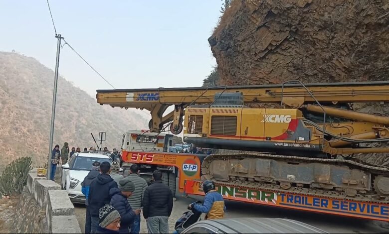 दोनों तरफ लगा लंबा जाम, छह घंटे की कडी मशक्त के बाद हटाया ट्रोला